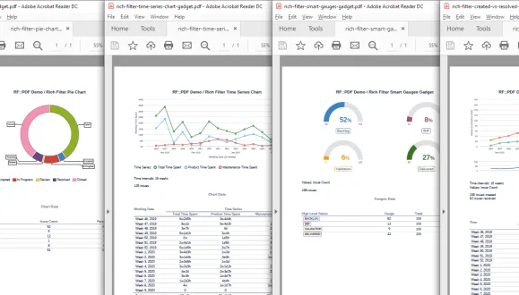- Create one PDF report from all of the Rich Filters gadgets on a Jira dashboard