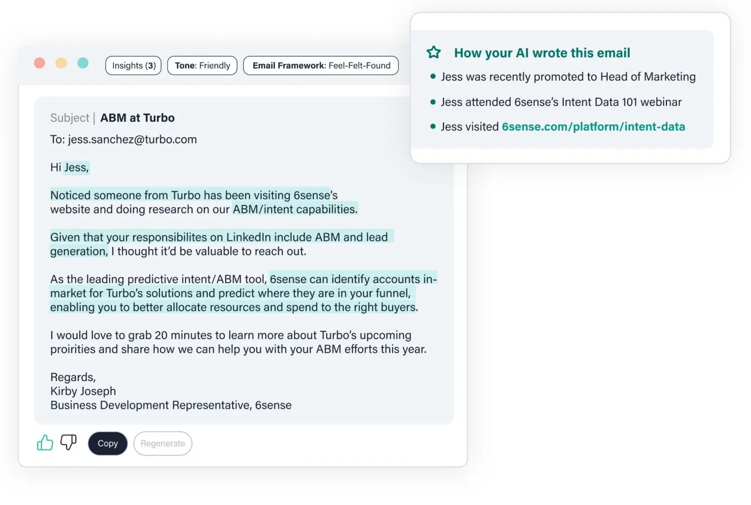 - **Coming Soon: Speed Up Your Email Outreach: **Our AI sales tool's built-in AI Writer taps into buying intent signals and account information to quickly craft best-in-class hyper-personalized emails. Tell it what you want. Review. Tweak. Send.