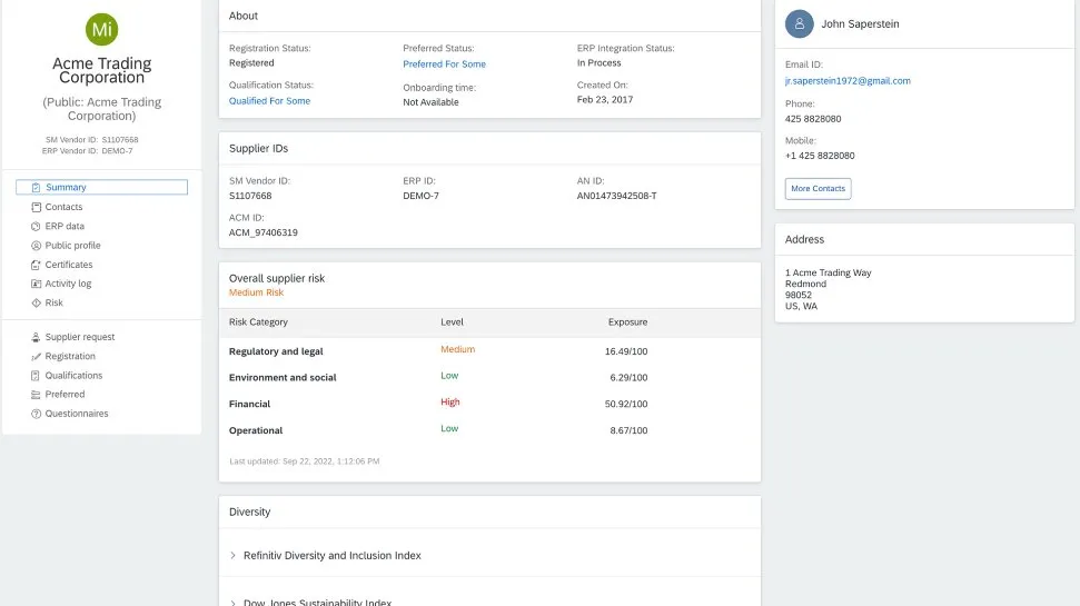 Integrate with SAP Ariba solutions for more effective and consistent supplier management throughout your supply base and source-to-pay process.