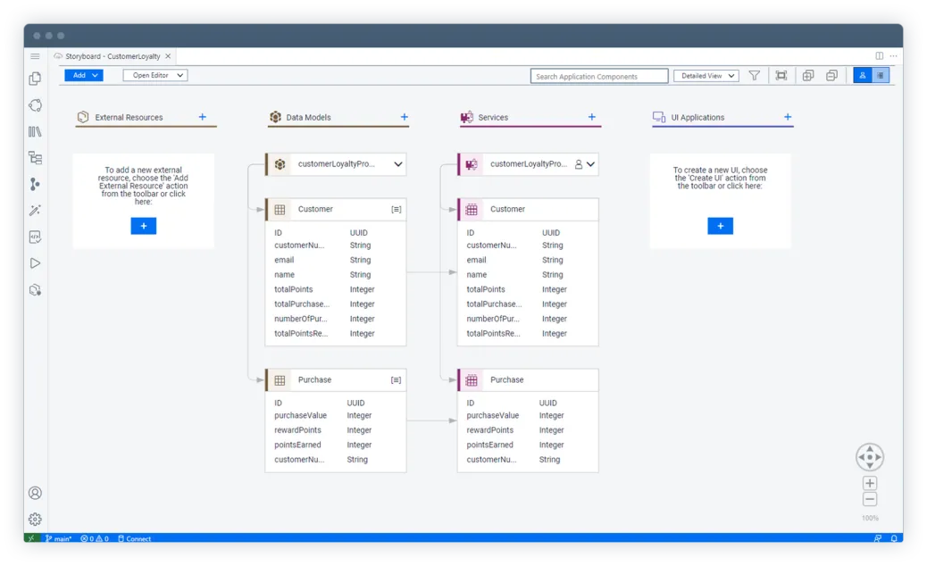 Use AI to generate app logic, data models, and test scripts.