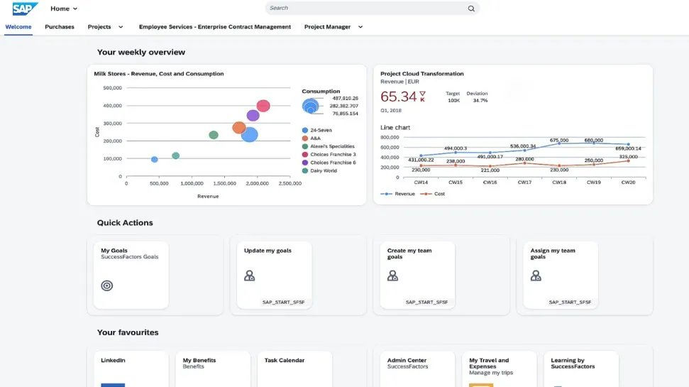 - Delight business users with a consolidated view of role-based insights and information across cloud solutions from SAP