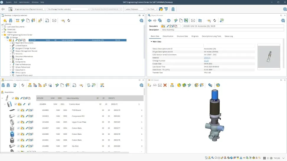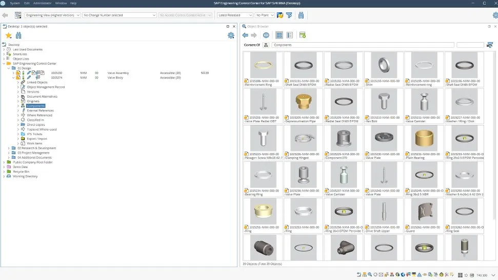 With SAP Engineering Control Center, you can integrate business data from SAP software with design information from authoring systems for mechanical computer-aided design (MCAD) and electrical and electronic computer-aided design (ECAD) software and other simulation tools.