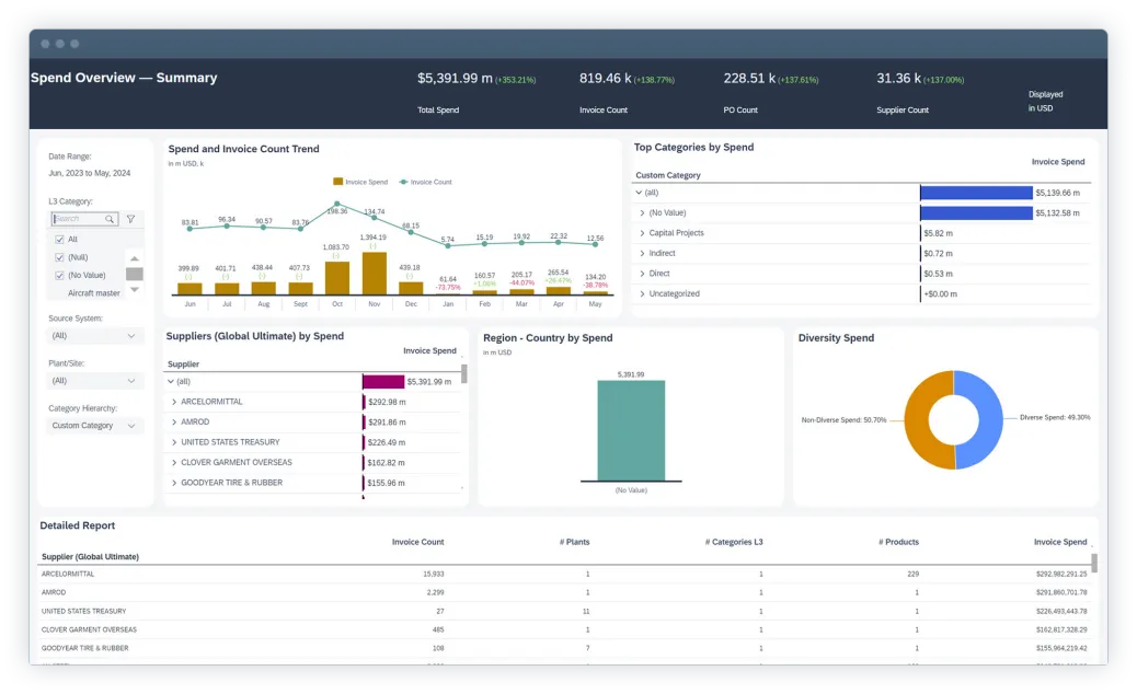 SAP Spend Control Tower brings together payment and supplier data no matter where it’s located into a single source of truth. AI-enabled spend classification and supplier enrichment on one dataset helps you more effectively reduce procurement costs and supplier risk. SAP Spend Control Tower replaces the SAP Ariba Spend Analysis solution, taking its powerful analytics and reporting capabilities even further.