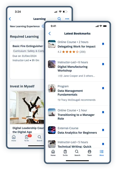Learning opportunities are available wherever and whenever needed – offline, on any device, and embedded into daily activities. Learning on the go Empower learners to discover, download, access, and track content anywhere, anytime with mobile and responsive experiences. Learning in the flow of work Embed learning and actions into daily activities with integrated experiences for virtual learning systems and Microsoft Teams. Learning views across the SAP SuccessFactors HCM suite Surface learning information and actions across the suite in a consistent and direct way.