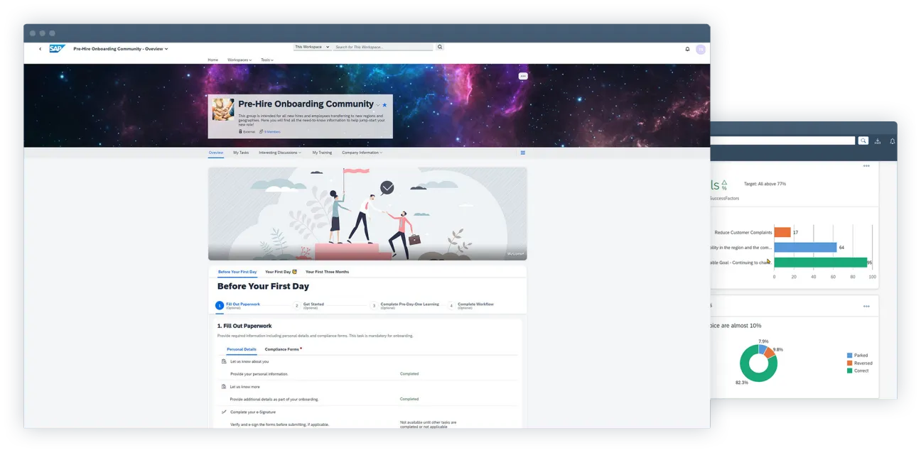 Go beyond a traditional intranet and empower employees with a personalized, modern, and intuitive digital workspace that provides relevant business insight and applications in one place. Connect employees to boost productivity, increase retention, and drive engagement through communication, communities, and personalized and guided experiences from across disparate systems with the SAP SuccessFactors Work Zone solution.