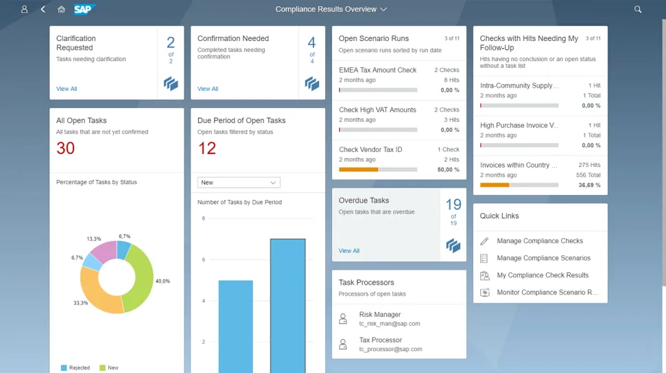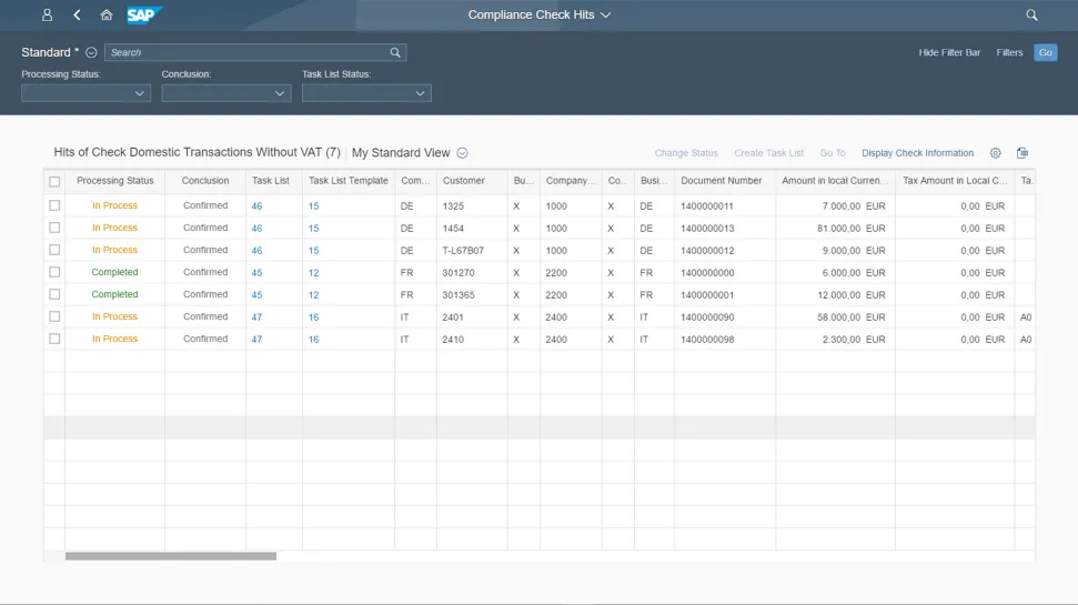 SAP Tax Compliance helps systematically check transactions and centralize remediation activities. The application also integrates automation so you can accelerate audit-proof corrections and comply with new digital mandates.