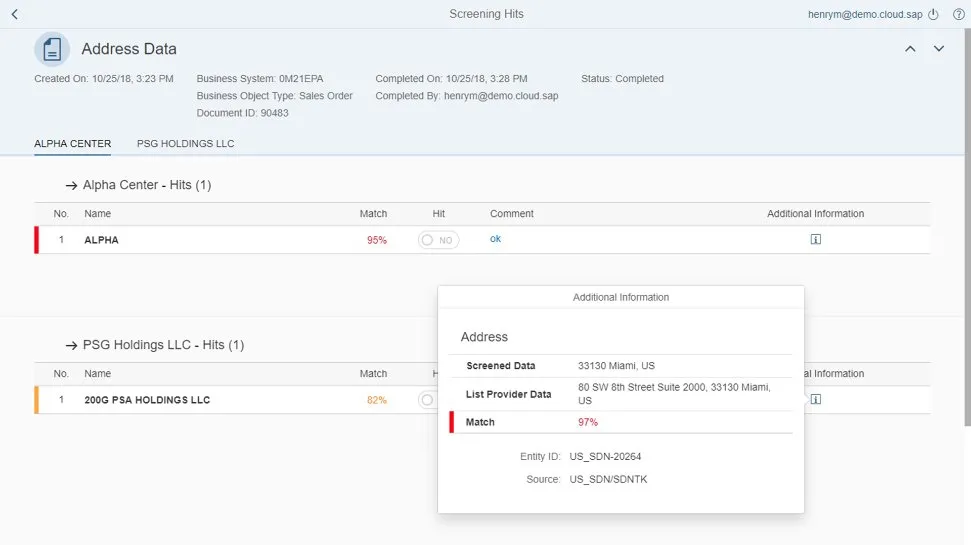 - Automated screening of restricted or denied parties with inline process blocking and release