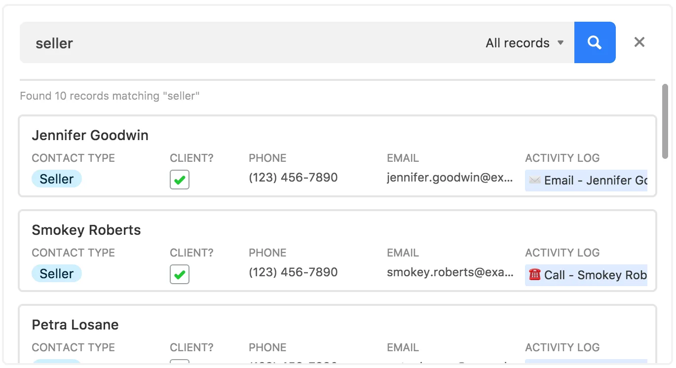 - Search by keywords, phrases, and specific field values.