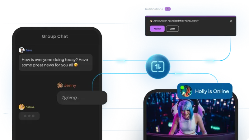 Synchronize real-time application metadata via low-latency signaling using Agora’s global network. Supports Android, iOS, Web, and Unity.
