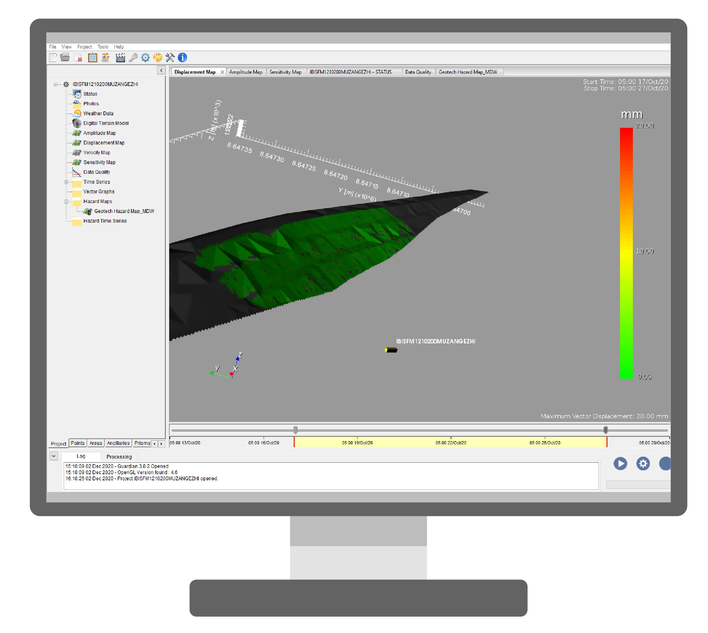 The SLYX Slow Movement Analysis is an advanced algorithm developed by Geopraevent, specifically designed for monitoring slow movements on tailing dams in mining applications. Integrated into IDS GeoRadar's IBIS Guardian software, SLYX enables the precise detection of minute displacements, even on vegetated slopes where traditional methods may falter. This capability is crucial for identifying early signs of potential slope failures, thereby enhancing the safety and stability of tailing dams.
