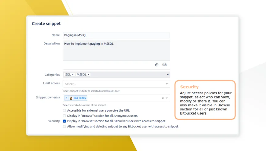 Easily create and share code snippets in Bitbucket