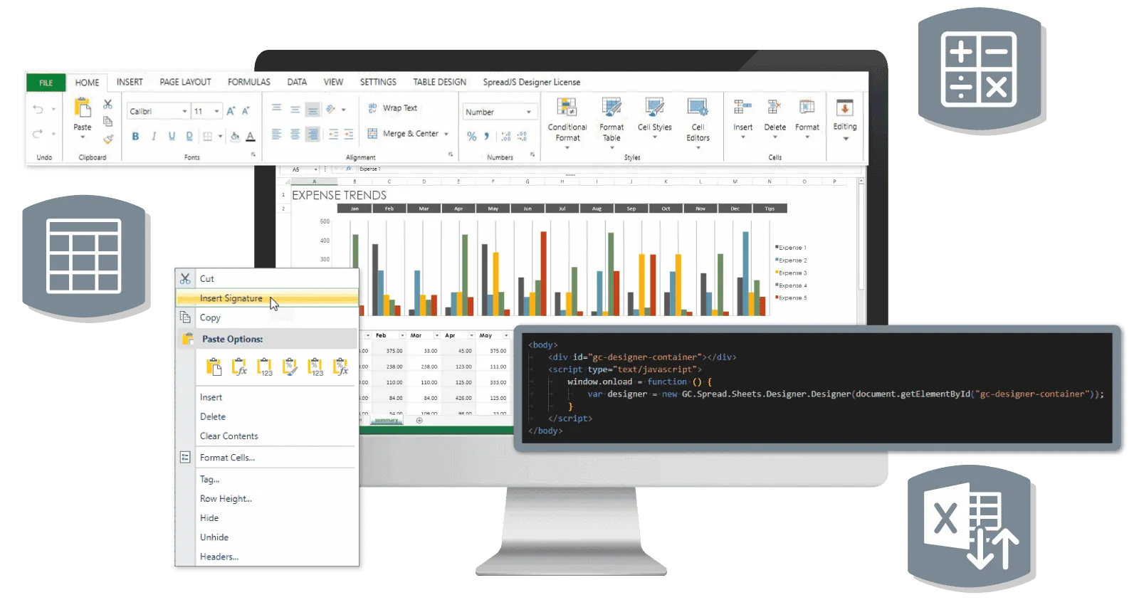 - Embed fully interactive spreadsheets into Angular, React, Vue, and TypeScript applications.