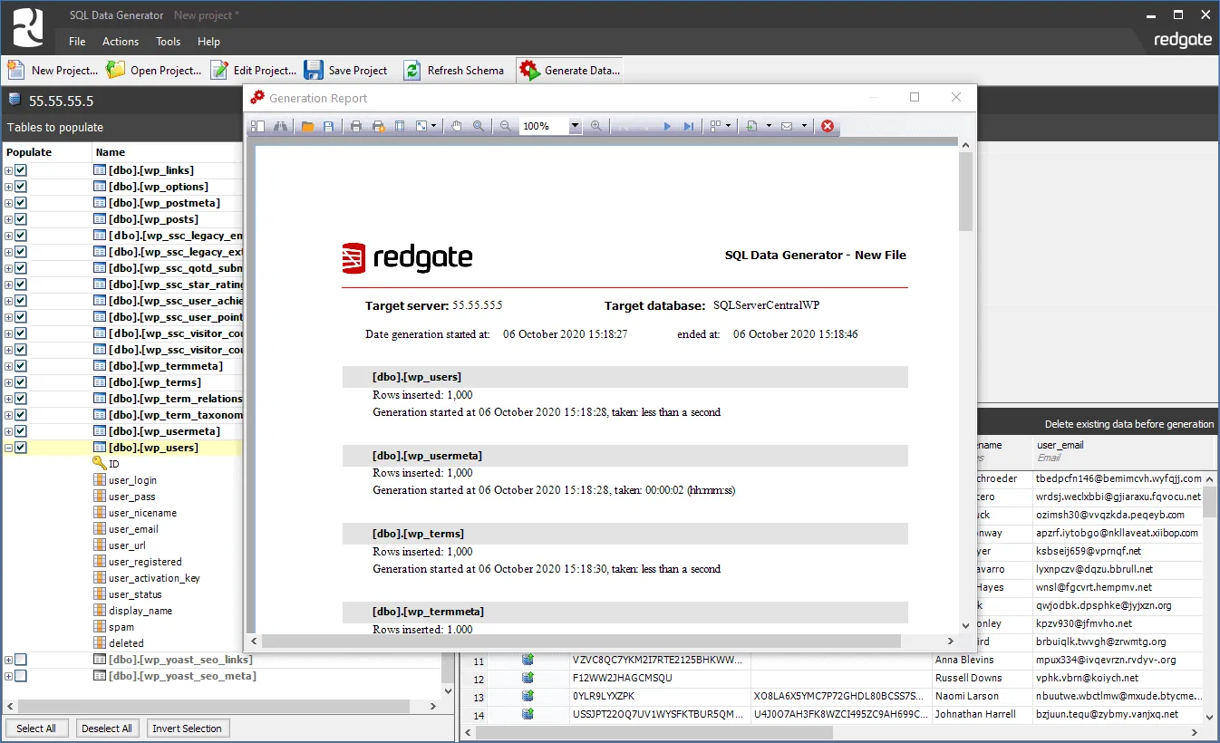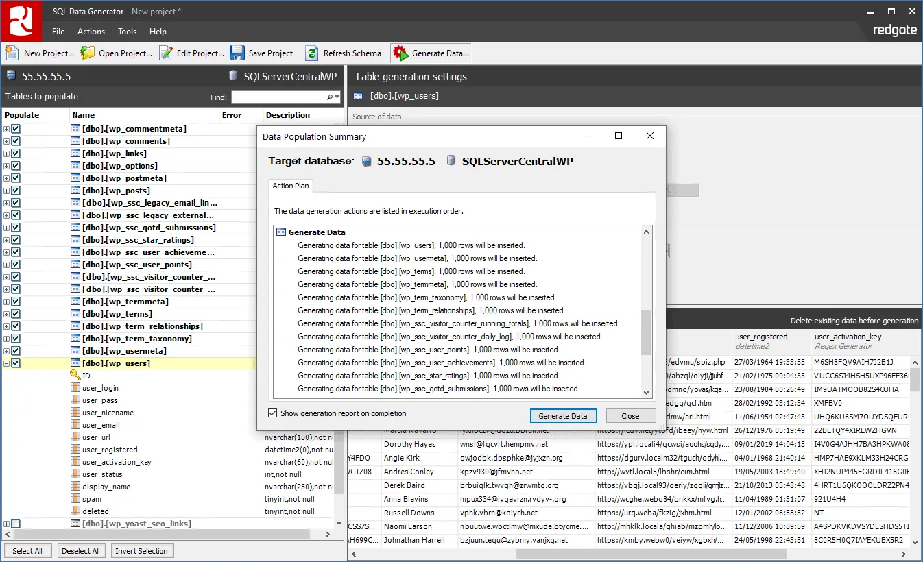 SQL Data Generator is a fast, simple tool for generating realistic test data.