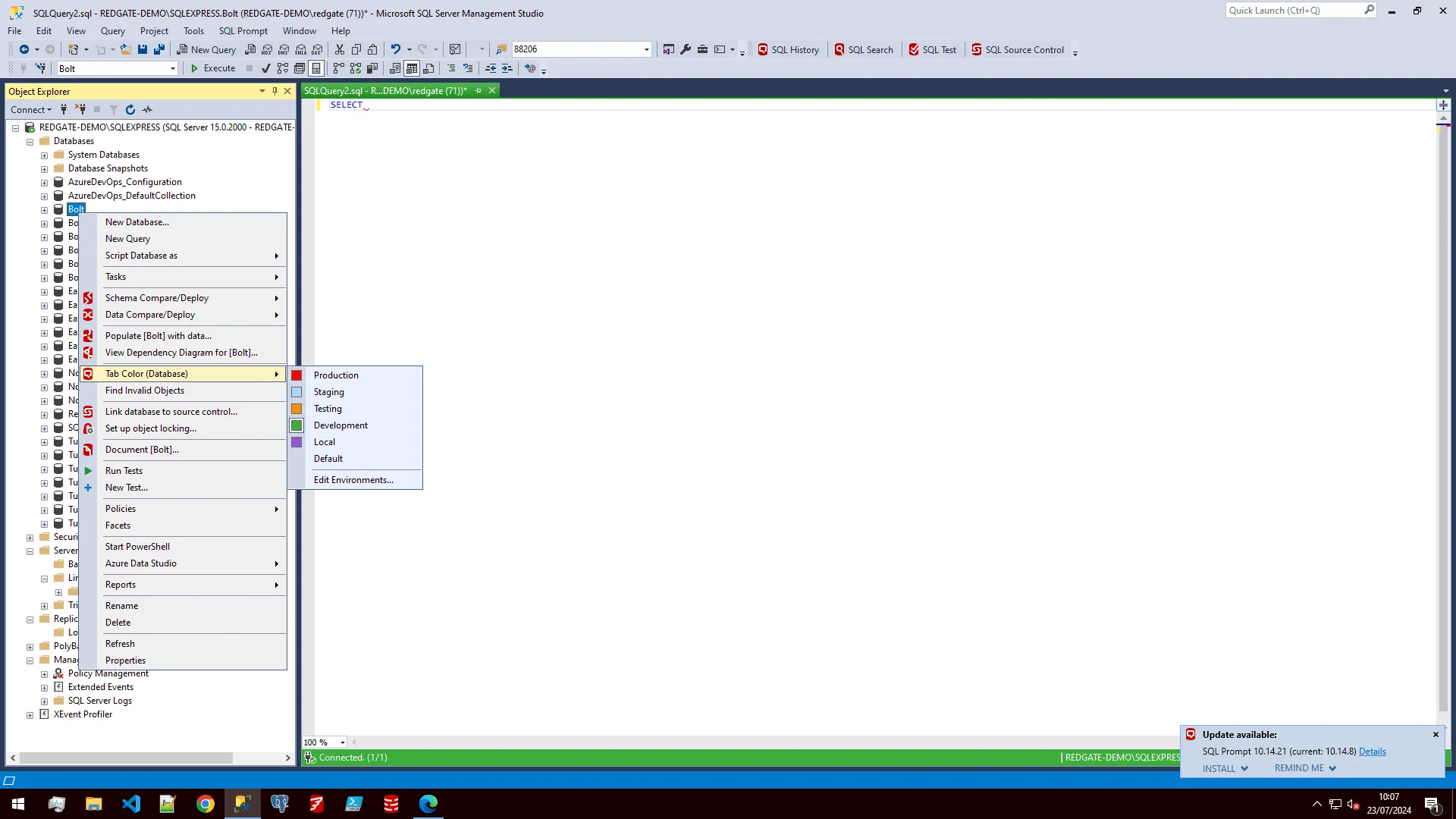 See at-a-glance what environment you’re working in within SSMS by setting different colours for your groups, servers and databases.