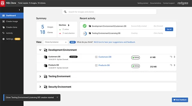 Provision virtualized clones of databases in seconds, with sensitive data masked