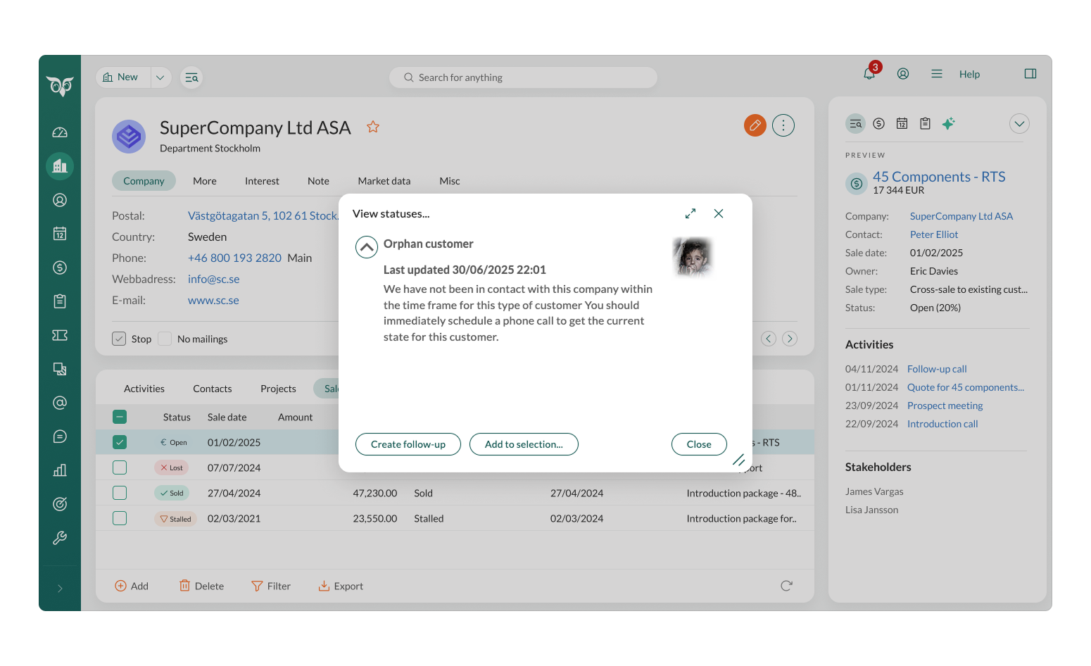 Sales Intelligence Stay ahead of the game. Set up Sales Intelligence to monitor your database and remind you when: