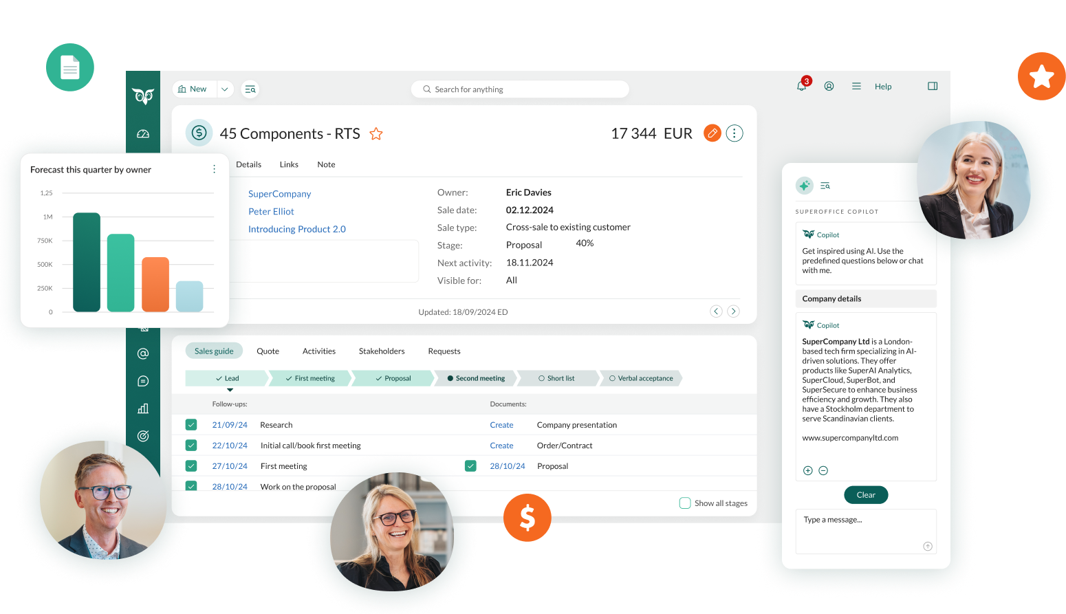 Prioritize selling time with SuperOffice Sales – an intuitive, self-populating CRM. Boost your sales team's efficiency with the help of AI: enhanced visibility for leaders, exceeded targets for managers, increased selling time and revenue for reps.