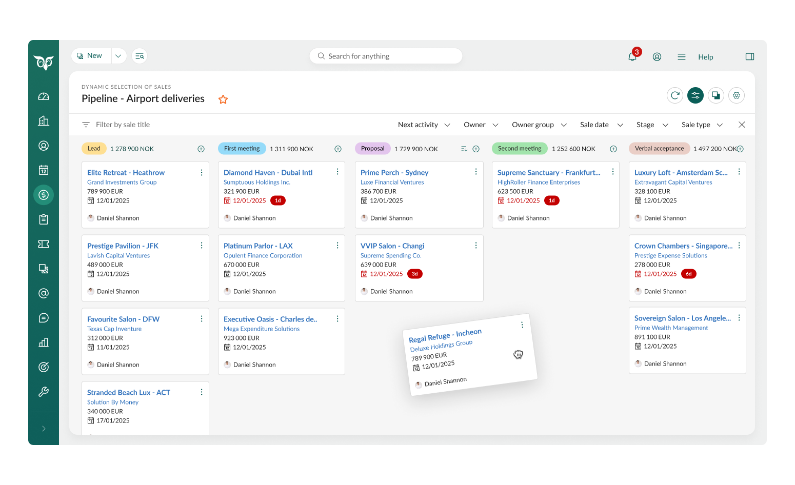 Keep a clear overview of your sales Stay on top of all sales for a representative or a team, using Board view. Spend less time digging for details and more time focusing on the next step to reach your sales goals: