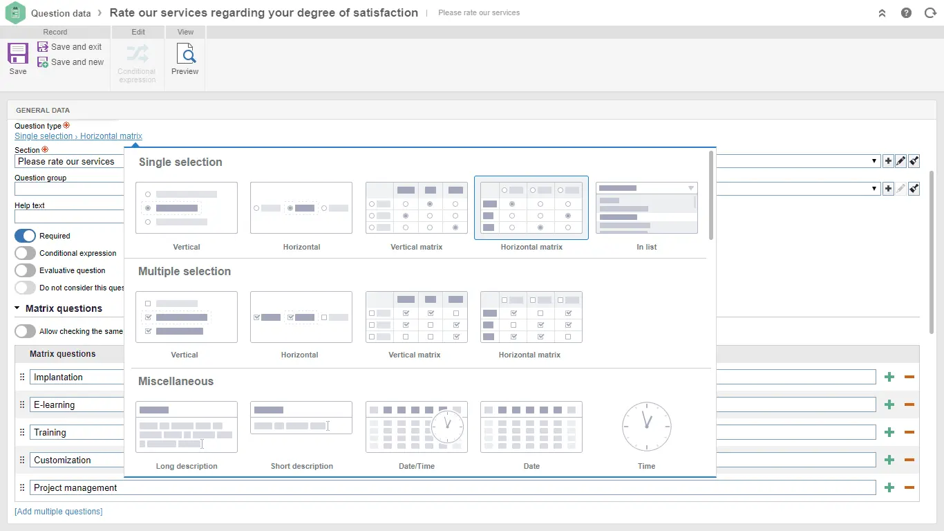 Custom Questionnaires Create custom questionnaires with various question types.