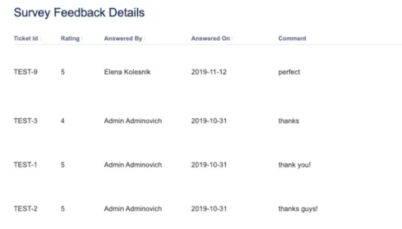- Survey feedback available in the Jira ticket, and in the aggregated survey feedback report