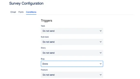 Use configurable trigger points for your surveys like opting to send surveys for only bugs or send surveys only once per issue. Set different conditions for different projects to opmtize your data.