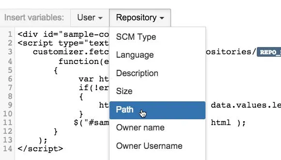 By using the handy editor you can add html, css and javascript to content variables. For both content and links you can reference the Bitbucket data.