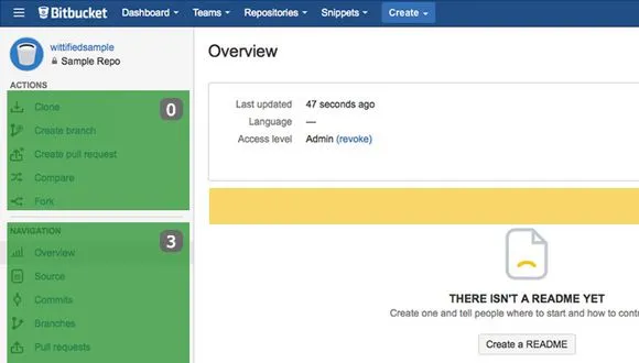 Create and maintain links and content panels in Bitbucket directly via a web browser