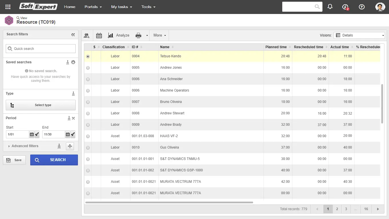Smart Scheduling Schedule resource allocation considering user availability and competence.