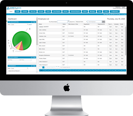 - Manage late arrivals, missed punches and other exceptions