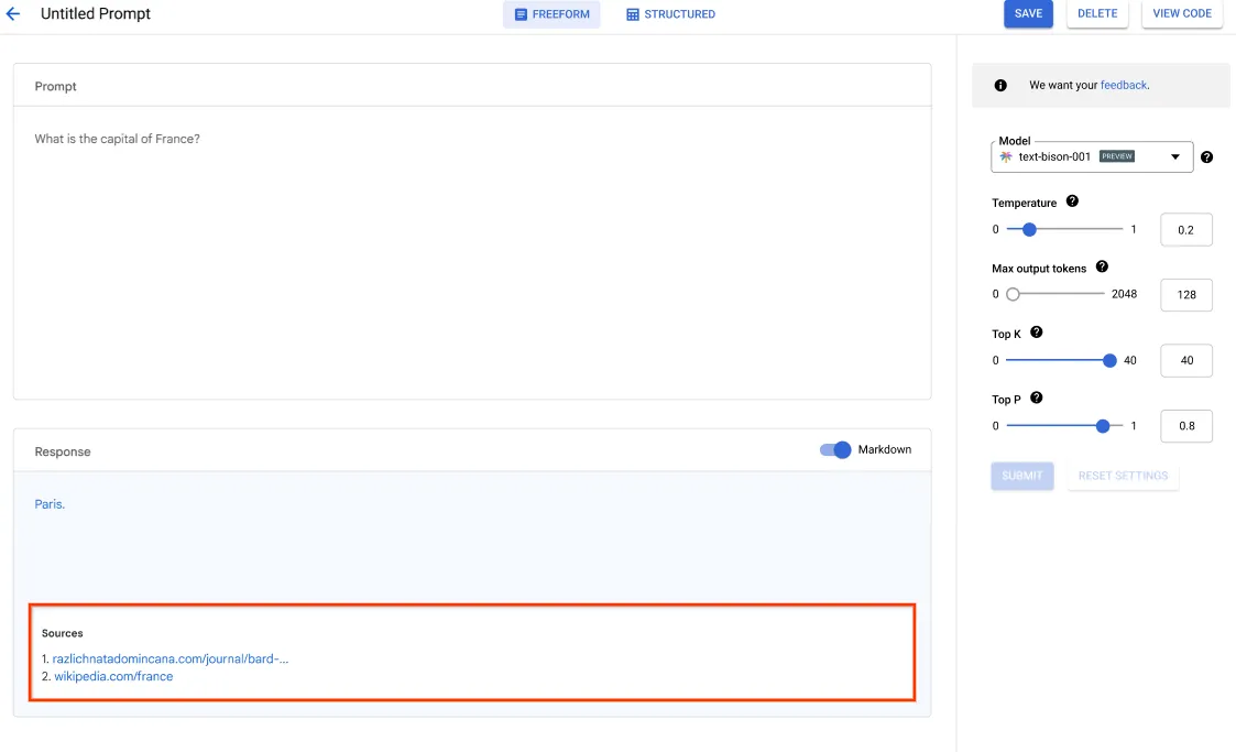 - Model Garden: Offers a variety of models, including first-party, third-party, and open-source models.