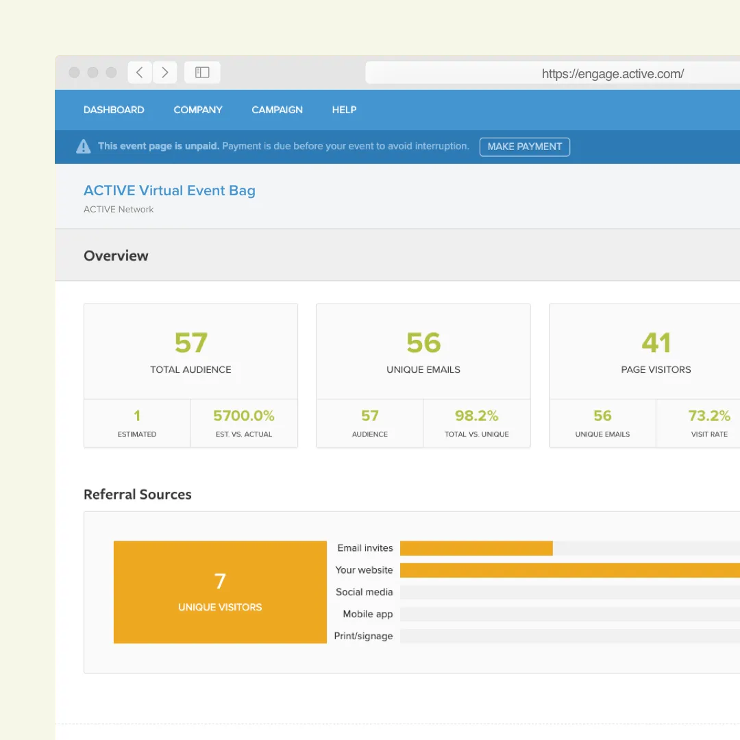 Sponsors invest in your event because of the quality of the audience you've built. When you share your bag via scheduled email invitations from the platform, you generate predictable, proven results that your sponsors expect. Promote access via your event mobile app, social media, event website, QR codes and more!
