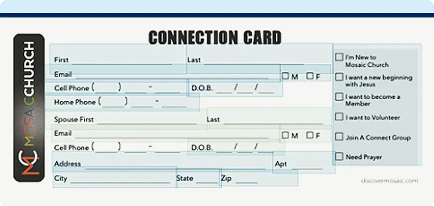 Create card templates to gather visitor information. Scan completed cards into Growth Method to begin nurturing new people in your church.