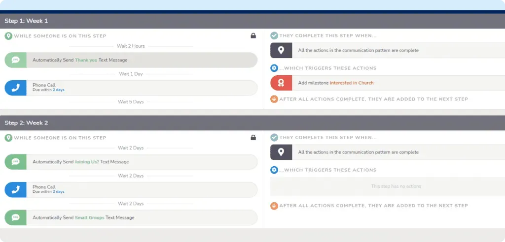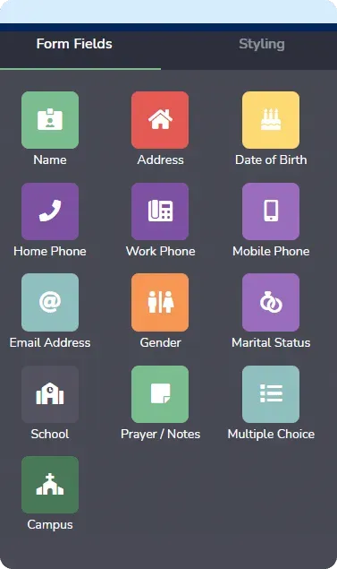 Build forms by choosing from style options and multiple fields to capture information about people new to your church. You can also create a text keyword for a visitor to send to get a form automatically sent to them.