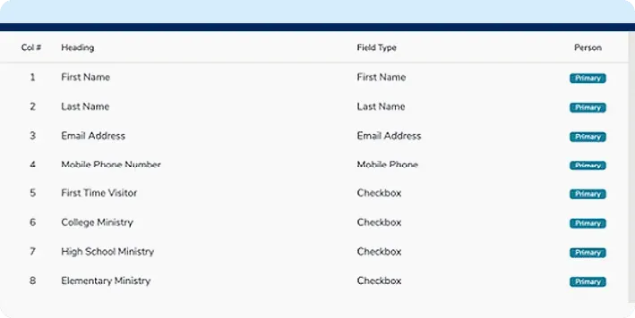Build CSV templates to import visitor information captured from other systems into your church management solution. Field mapping allows you to choose different field formats and ensures the information is stored in the correct place.