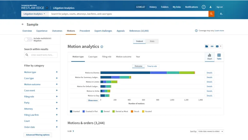 - **Improve your strategy with actionable data from Litigation Analytics: **Enhance your strategy with data-driven insights on judges, courts, attorneys, law firms, and case types in most practice areas. Quickly answer questions about likely outcomes, schedules, and costs.