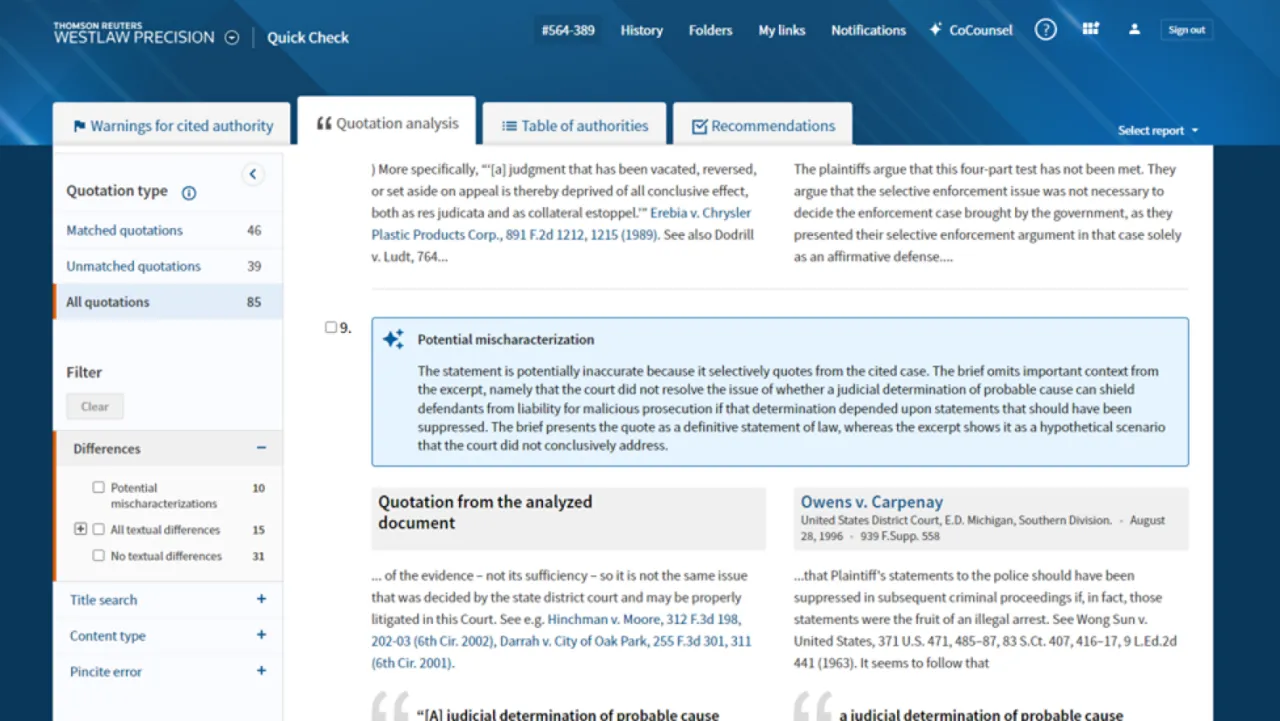 - **Boost your confidence with Quick Check: **Save time with Quick Check, the intelligent document analysis tool that uses generative AI to verify if quotations are used accurately.