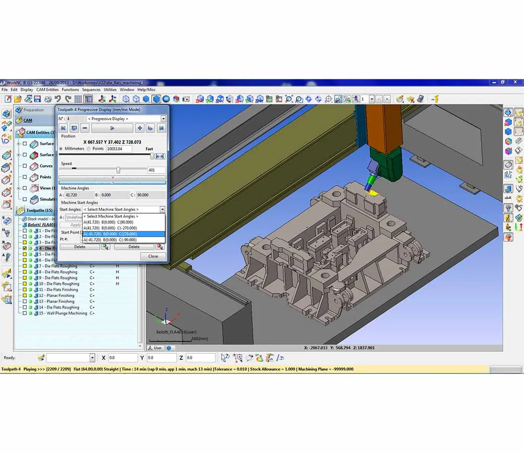 - Advanced simulation: Allows detailed verification of toolpaths and machining strategies.