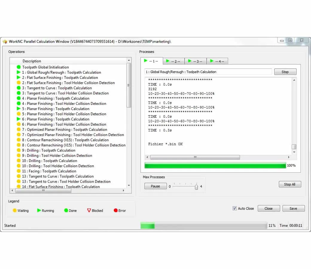 Advanced Parallel Processing allows the user to calculate up to four toolpaths simultaneously in each workzone.