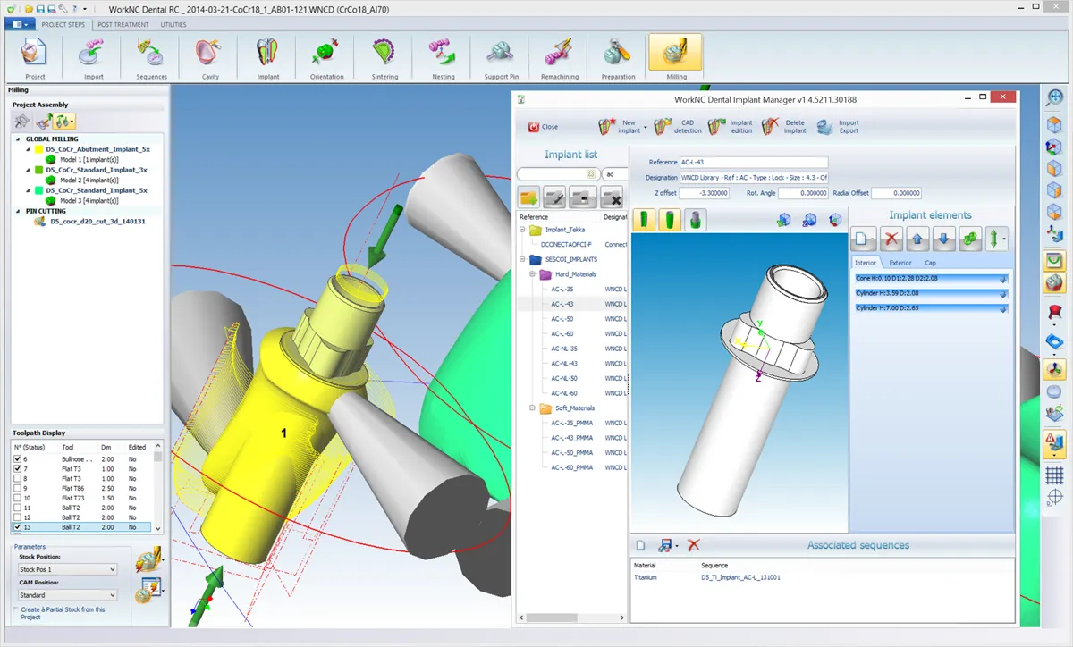 The WorkNC Dental Implant Module is a specialized solution designed to optimize the production of dental implants. This software module integrates seamlessly with the WorkNC Dental system, providing advanced features for precise and efficient implant design, machining, and customization. It facilitates the creation of complex, anatomically accurate implants with reduced programming time and enhanced process reliability. By offering a user-friendly interface and automated processes, it ensures high precision, flexibility, and productivity in dental implant manufacturing.