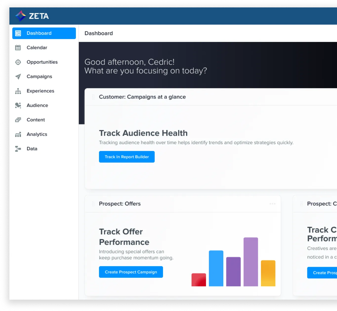 Individualized Experience Creation Zeta offers a visual experience management interface for creating and deploying personalized customer interactions.